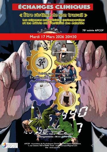 Mar78e soirée d'échanges cliniques, Etre victime de son travail, mardi 17 Mars 2026, GHU-Sainte-Anne, amphi Morel, 20h30